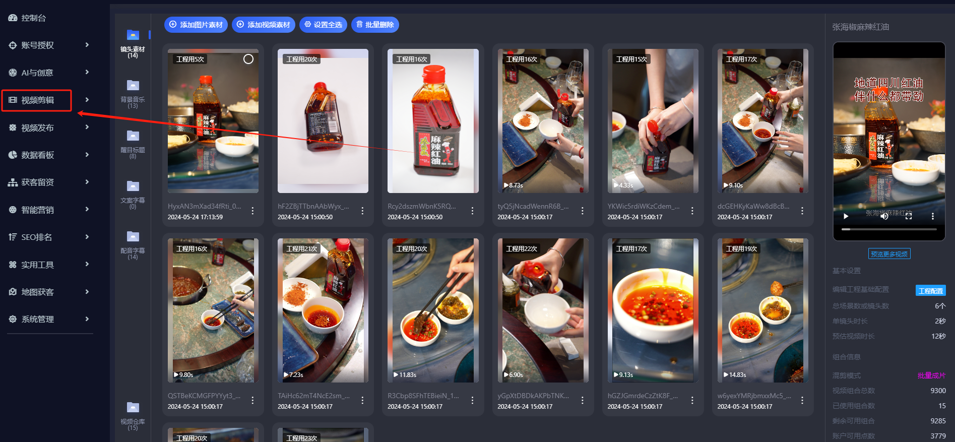 1、一键批量剪辑(收录素材,一键批量剪辑)