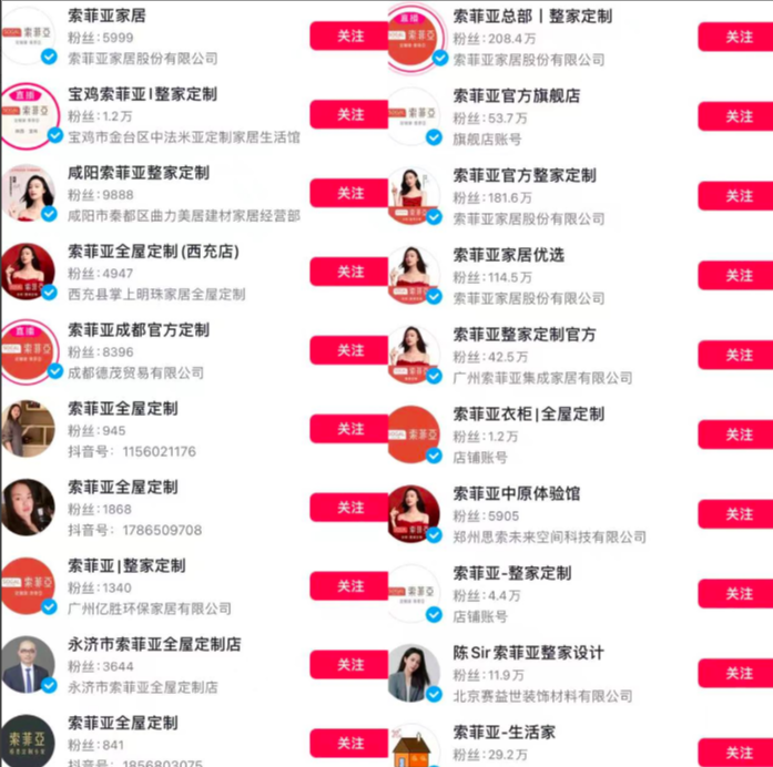 今天要分享的案例是索菲亚整家定制打造的矩阵案例,索菲亚拥有终端门店约4,000家,覆盖全国1,800个城市和区域,推广初期。共设立上百个账号进行矩阵推广,服务商通过达人探店+挂载预约客户表单+矩阵系统裂变曝光这样的模式,来服务商家,整个活动都是由服务商来操作完成的。